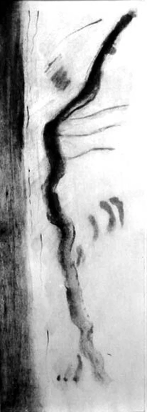 On my rational side, I look for some parts of the racoon body and skeleton that are close to us, like the hands, the spine cord, the nails and the scapula. Around I wrote some sentences that were connected like a pun, ending that we are the animals and they are the humans. This is a small piece 15x28cm.