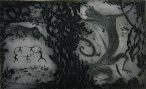 ©Ileana Moya, Waris. Metal etching printed on handmade paper (made by the artist), 71x 60cm.
